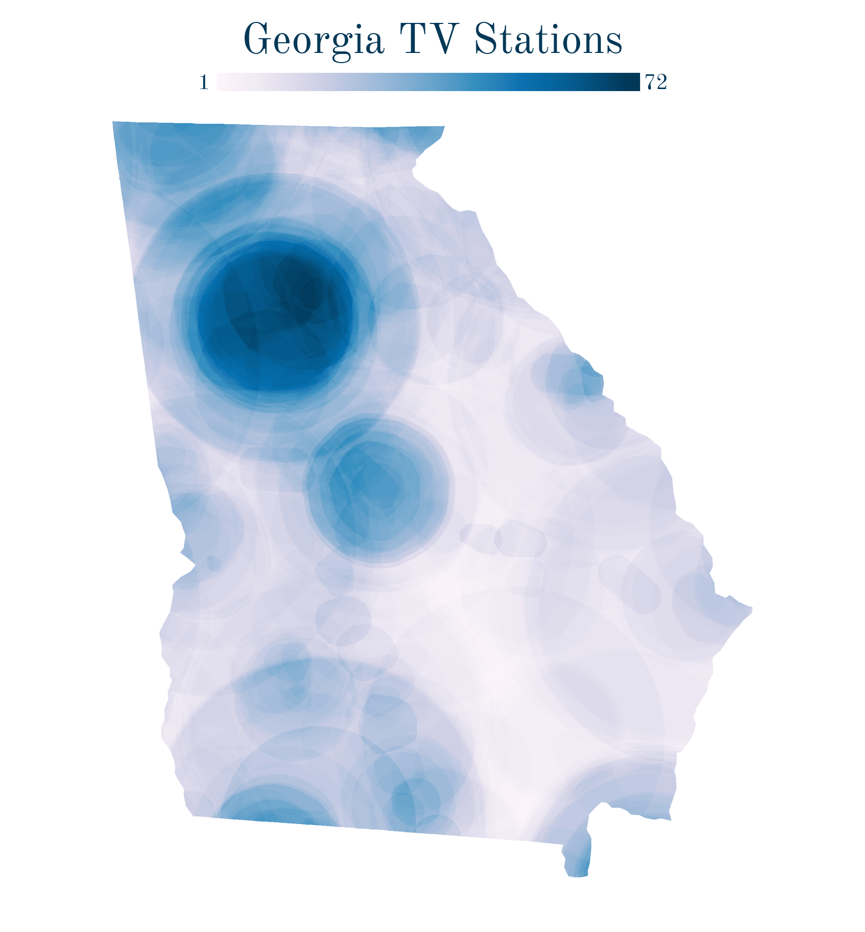 Again, Utah sticks out. There’s tons of tiny TV stations scattered across the state in a way I don’t see anywhere else. It also appears the area around Cedar City receives more than 100 stations–more than SoCal or NYC! As with the radio stations, I don’t know if this is an issue with the data or the reality on the ground. I’d really like to find out what exactly is going on, as it’s unlike anything else in the country.