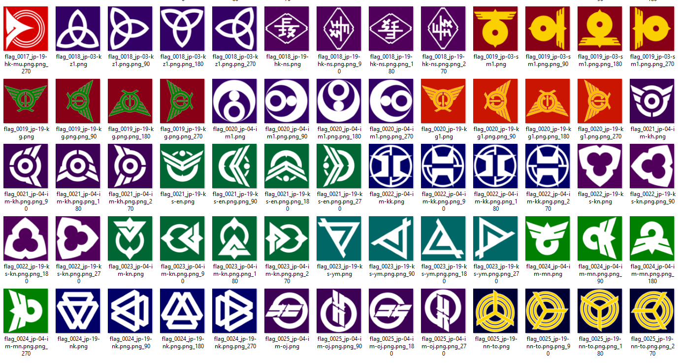 I scraped the municipal flags of Japan from this website and wrote a neat little R script to crop the images to just the central motif. After cropping and cleanup of duplicates, I had about 3,000 images.